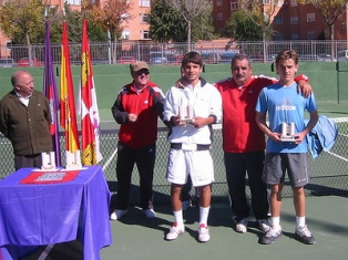 El citado Alberto González fue el vencedor en infantil masculino. Con un excelente tenis se impuso por 6-1 y 6-4 al salmantino Alberto Pérez-Moneo, que intentó remontar el resultado en el segundo set pero no lo logró ante la solidez del campeón.   Finalmente, el título alevín masculino se decidió entre dos raquetas locales, ambos pertenecientes al Club de Tenis Ávila. Un interesante duelo protagonizaron Álex García y Antonio Cembellín. El primer set era para Álex por 6-2 y también el segundo pero por 7-5 y donde Antonio tuvo dos bolas de set para empatar el partido.   |