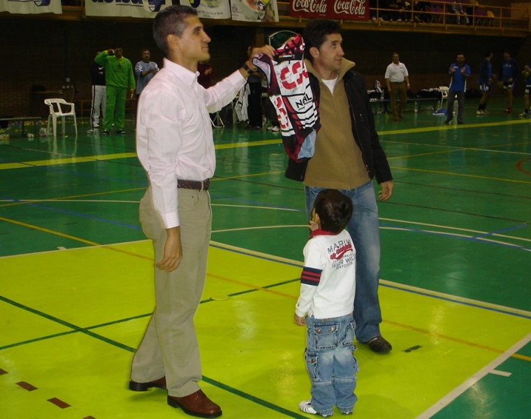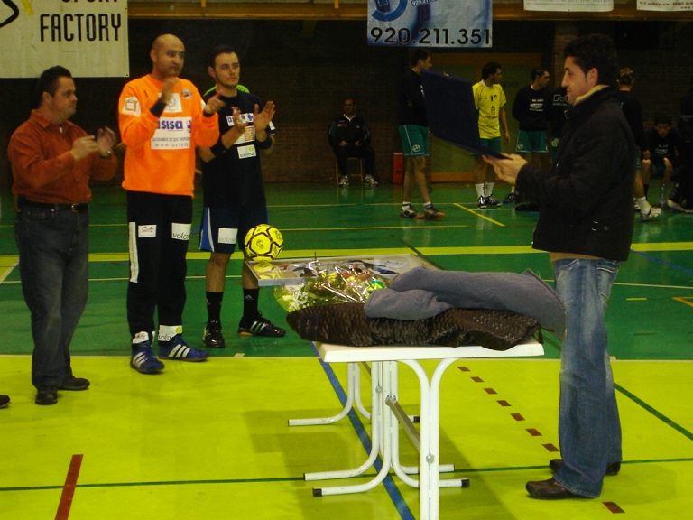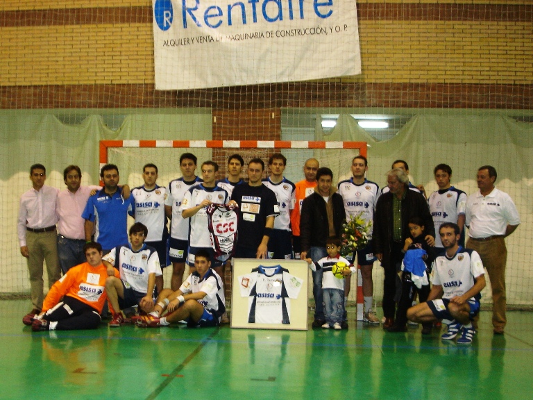 En las imágenes inferiores se recoge el momento del homenaje al corredor Carlos Sastre, a quienes el presidente del club Avila 7 Metros, José Jiménez Fraile, el capitán Nacho y el portero Arévalo, entregaron una camiseta enmarcada, una placa y un ramo de flores, posando toda la plantilla con el jefe de filas del CSC.